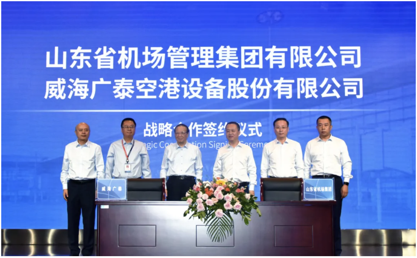 2020年9月28日下午,山東省機場管理集團有限公司(以下簡稱“山東機場集團”)和威海廣泰空港設備股份有限公司(以下簡稱“威海廣泰”)在威海隆重舉行戰略合作框架協議簽約儀式,雙方共敘友情,共謀未來發展,尋求合作共贏新模式。威海廣泰董事長李光太和山東機場集團黨委書記、董…