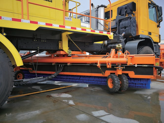 該類(lèi)設(shè)備是通過(guò)向機(jī)場(chǎng)跑道及機(jī)場(chǎng)作業(yè)區(qū)的道面噴灑防(除)冰液,來(lái)達(dá)到使機(jī)場(chǎng)道面不結(jié)冰的目的,進(jìn)而保障機(jī)場(chǎng)的正常使用。主要由汽車(chē)底盤(pán)、液路系統(tǒng)、液壓系統(tǒng)、電氣控制系統(tǒng)、擺臂系統(tǒng)、液罐系統(tǒng)等組成。